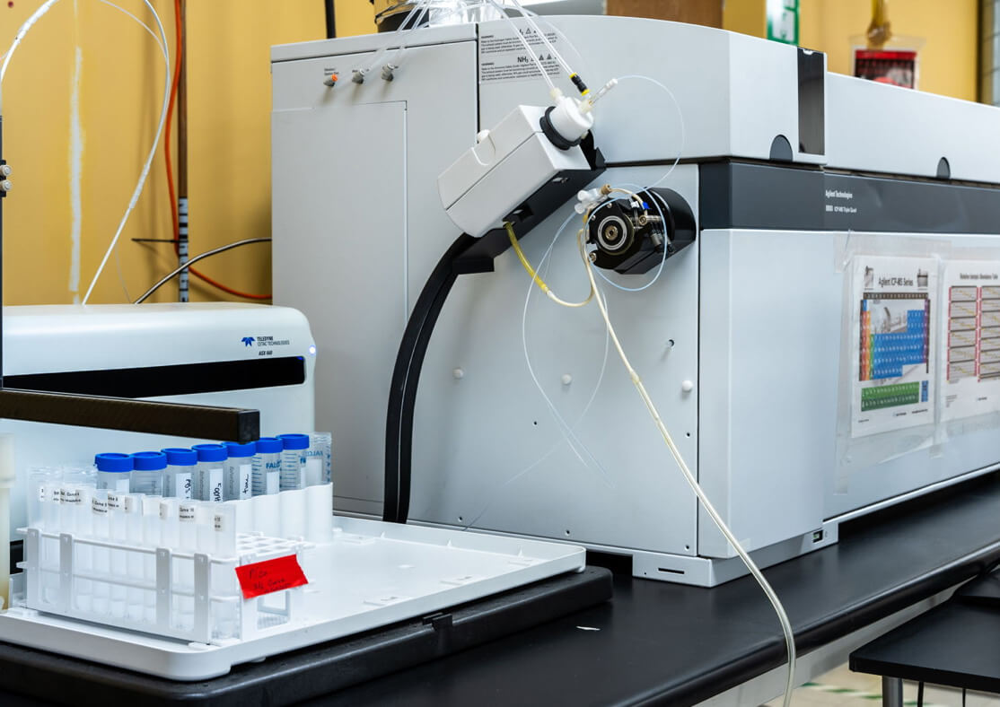 Inductively Coupled Plasma Mass Spectrometry (ICP-MS) is a highly sensitive elemental analysis technique that enables quantitative and qualitative determination of virtually any element or isotope. ICP-MS is distinguished by its extremely low detection limits, allowing accurate measurement of trace and ultra-trace elements from a variety of sample types. Analysis is rapid, and multiple elements can be measured simultaneously, making ICP-MS suitable for high-throughput and time-sensitive applications. At Momentum, we operate an Agilent 8800 ICP-MS/MS, a triple-quadrupole system that provides improved element coverage, accuracy, and sensitivity.
